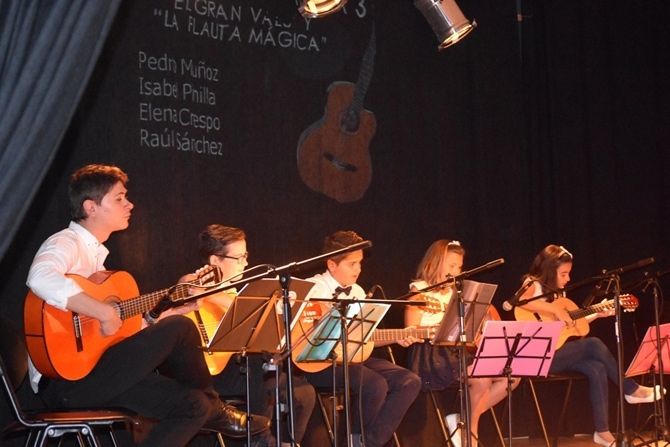 Una noche que empezó con los más pequeños de la escuela, la Guardería Musical, que a pesar de sus edades nos cantaron e interpretaron una bonita canción.  La noche continuó con los alumnos de flauta, acordeón y guitarra que nos demostraron sus habilidades con el instrumento, tocando diferentes piezas de diferentes épocas y estilos. Además este año y como novedad se estreno el Grupo Joven, un grupo de jóvenes apasionados por la música que nos interpretaron canciones actuales. El broche final lo puso el Coro de Voces Blancas finalizando la noche con sus emotivas canciones.