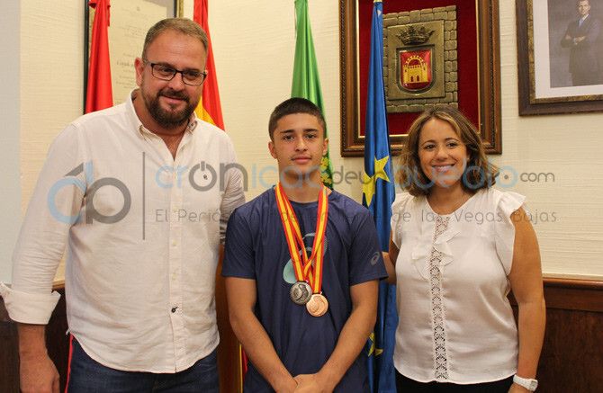 Antonio Rodríguez Osuna recibe al joven gimnasta Sergio Moreno, que ha conseguido plata y bronce en el campeonato de España