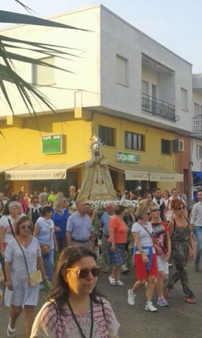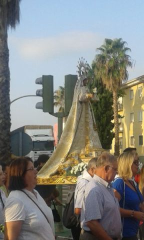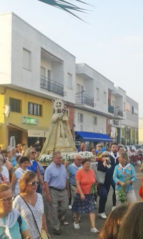 Tras la Eucaristía celebrada en la ermita de Barbaño, la imagen de la Patrona de Montijo, fue traslada procesionalmente hasta la iglesia parroquial de San Pedro Apóstol, por el llamado Camino viejo de Barbaño (antiguo cordel de ganados). Cerca de la Laguna de las Encantás, se hizo una parada distribuyéndose entre los asistentes ramos de albahaca.