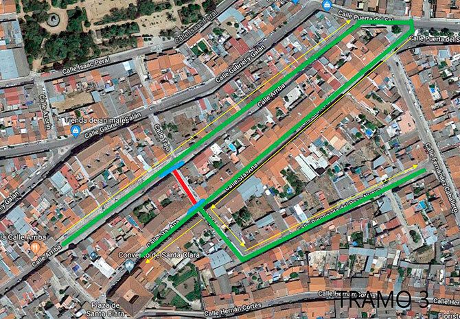 Durante los días 12, 13 y 14 de septiembre el tráfico de vehículos se verá interrumpido en la calle Tajo –desde la calle Santa Ana hasta la calle Arriba-, teniendo como itinerario alternativo de salida Puerta del Sol –si el vehículo se encuentra en la calle Pozo Nuevo- y Santa Ana de acceso ( FOTOGRAFÍA ADJUNTA TRAMO 3).