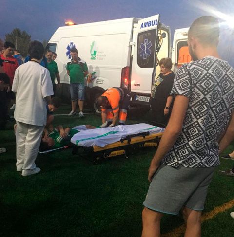 El encuentro entre el CD Valdelacalzada y el Racing Valverdeño acaba con un futbolista trasladado al Hospital