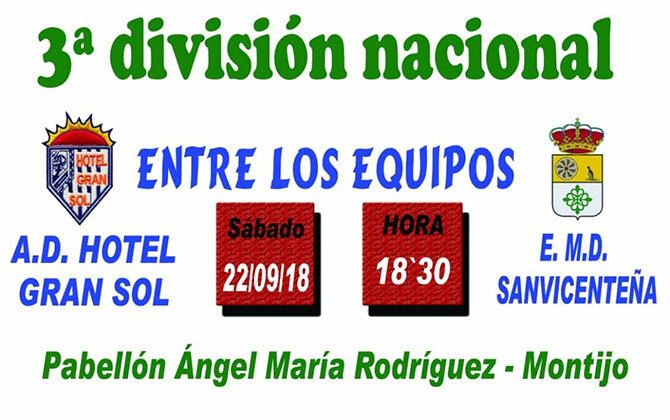 Vuelve la 3ª división de fútbol sala a Montijo. El sábado 22 de septiembre a las 18:30 horas, la A.D. HOTEL GRAN SOL MONTIJO F.S. disputa su primera jornada de liga en casa frente al E.M.D. SANVICENTEÑA.