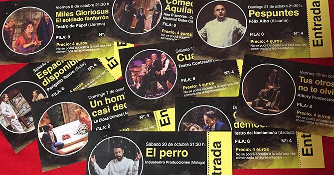 Hoy, 24 de septiembre 2018, ya se puede adquirir las entradas para cuada uno de los espectáculos programados en el XXXVII Festival Nacional de Teatro Vegas Bajas. Precio de la entrada: 4 euros. Los bonos, para los 9 días, se siguen vendiendo a 30 euros.