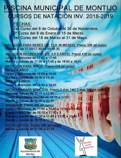 La Concejalía de Deportes del Ayuntamiento de Montijo pone en marcha los cursos de natación para la temporada de invierno 2018-2019 en la Piscina Climatizada de Montijo.
