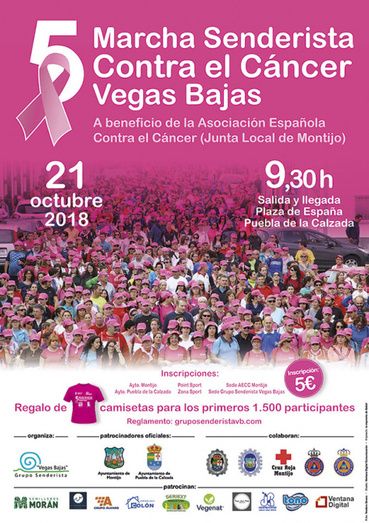 El Grupo Senderista Vegas Bajas abre el plazo para inscribirse en la quinta edición de la ‘Marcha Senderista Contra el Cáncer Vegas Bajas’ que partirá el próximo 21 de octubre a las 9:30 horas desde la plaza de España de Puebla de la Calzada hasta la localidad de Montijo (y regreso para lectura de manifiesto).