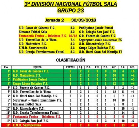 Segunda jornada de liga donde los nuestros perdieron fuera de casa por 5-3 frente a A.D. GRANJA FUTSAL que supo aprovechar los errores de los nuestros para ponerse rápido por delante en el marcador, los primeros compases no fueron buenos para el equipo ya que se encajaron dos goles en el principio del partido y llegando al descanso con una desventaja de 4-0.el segundo tiempo la cosa cambió un poco puesto que con más calma aparecieron los huecos y el equipo dio otra cara recortando distancias, en el tramo final con el portero-jugador los nuestros no estuvieron muy acertados y cosecharon la primera derrota que nos deja en mitad de tabla.