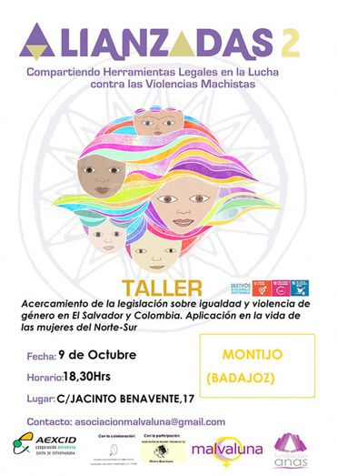 El taller en Montijo será de acercamiento de la legislación sobre igualdad y violencia de género en El Salvador y Colombia. Aplicación en la vida de las mujeres del Norte-Sur, y tendrá lugar el 9 de octubre, a las 18:30 horas, en la calle Jacinto Benavente número 17, en la sede de la Asociación de Mujeres Progresistas Elvira Quintana.