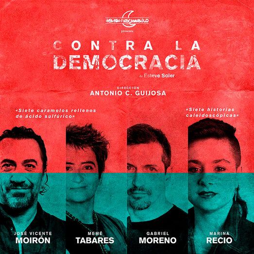 “Contra la democracia” son 7 pequeñas obras que mezclan horror y comedia, 7 momentos tan extraños como próximos, 7 visiones surrealistas y contundentes sobre un engaño colectivo cada día más escandaloso… ¿Todavía hay alguien que crea que los ciudadanos gobernamos nuestra sociedad?
