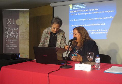 La profesora Alonso Sánchez proyectó varias imágenes relacionadas con la villa romana de Torreáguila y el dolmen del Lácara. Junto con Atapuerca y una villa romana en Castilla-León.