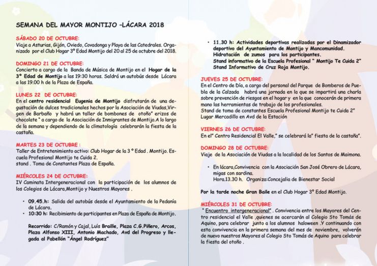 Una amplia programación se desarrollará en la localidad y pedanía de Lácara con motivo de la Semana del Mayor que se desarrollará del 21 de octubre al 4 de noviembre.