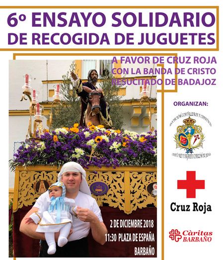 Este próximo domingo 2 de diciembre, a las 11:30 horas de la mañana, tendrá lugar la 6ª recogida de juguetes a favor de Cruz Roja, que por primera vez se hará en  la localidad de Barbaño. La salida será de la Plaza de España y recorrerá varias de la calles de la localidad.