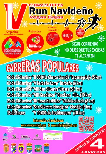 En breves fechas se iniciará el circuito de carreras “Run Navideño Vegas Bajas” que se viene celebrando en nuestra comarca desde hace algunos años.