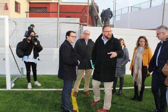 En el transcurso de la visita, el alcalde ha destacado que se han reutilizado las antiguas instalaciones que estaban en desuso, unas viejas pistas de tenis que se han convertido en un campo de fútbol 7 y dos de fútbol 5.