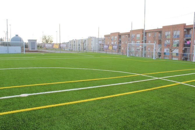 El alcalde, Antonio Rodríguez Osuna, y el presidente de la Diputación de Badajoz, Miguel Ángel Gallardo, han inaugurado esta mañana el nuevo campo de fútbol de césped artificial de la barriada de La Corchera.