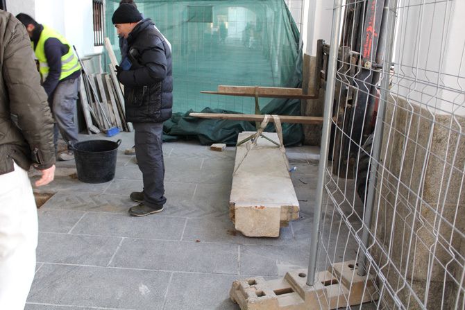 En concreto, según el delegado, se trata de intentar rebajar el zócalo de la entrada principal del Ayuntamiento para que puedan acceder al mismo las personas con movilidad reducida. De esta manera, se ha retirado el gran zócalo de mármol que existía en la puerta y se va a proceder a su colocación a ras de suelo.