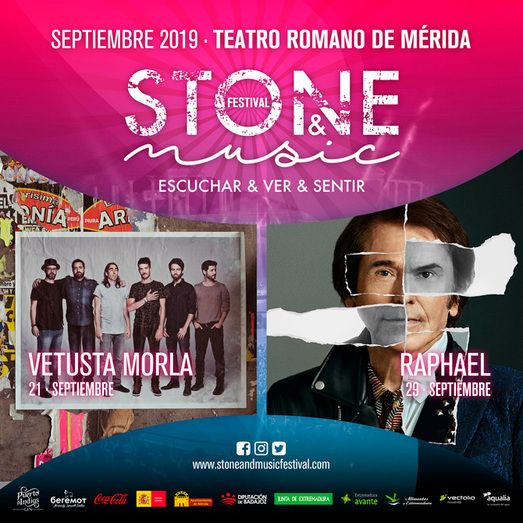 Nuevas incorporaciones al cartel del Stone & Music Festival 2019. Hoy se confirma la presencia de dos de los artistas más demandados del país en el Teatro Romano de Mérida. Raphael vuelve al Festival con un disco que está siendo la revelación del panorama musical nacional. Por su parte, Vetusta Morla pisará por primera vez la arena del Teatro Romano de la capital extremeña en un concierto único de una banda acostumbrada a abarrotar recintos multitudinarios.