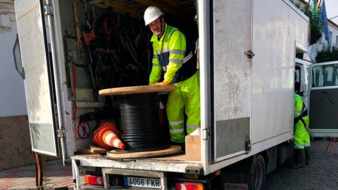 Han comenzado las obras de instalación de fibra óptica en Guadiana del Caudillo, gracias a lo cual los hogares de la localidad podrán acceder a Internet de máxima velocidad próximamente.