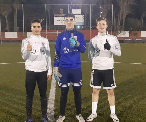 José David, Jorge Jiménez y Coronado, de la UD Montijo, en el Campeonato de España de Selecciones