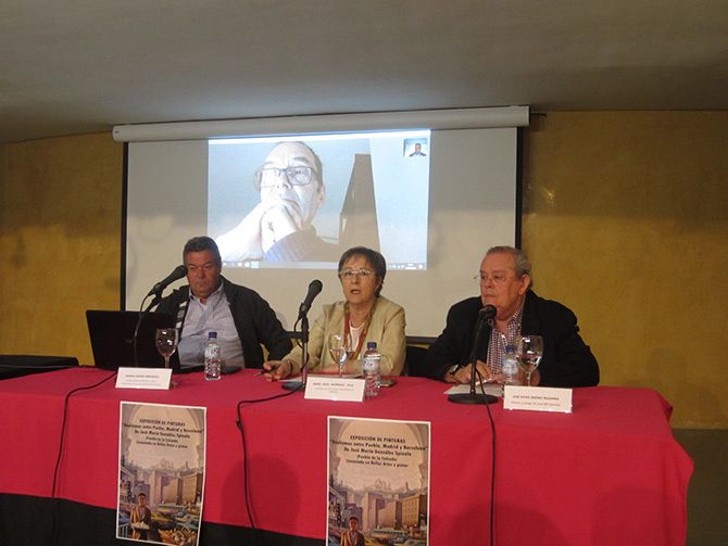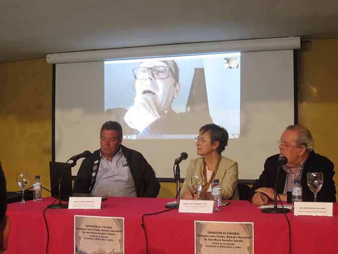 José María González Spínola al no poder estar en Montijo lo hizo a través de videoconferencia, explicando las tres partes de las que consta la exposición sobre su pintura realista: Puebla (cinco cuadros), Madrid (tres obras) y Barcelona (ocho cuadros). Dieciséis obras que merecen la pena verlas y recrearse en ellas, hechas con perfección y estilo en la técnica pictórica empleada. González Spínola auguró otra próxima exposición con obras que mostrarían las formas en las que ahora trabaja.