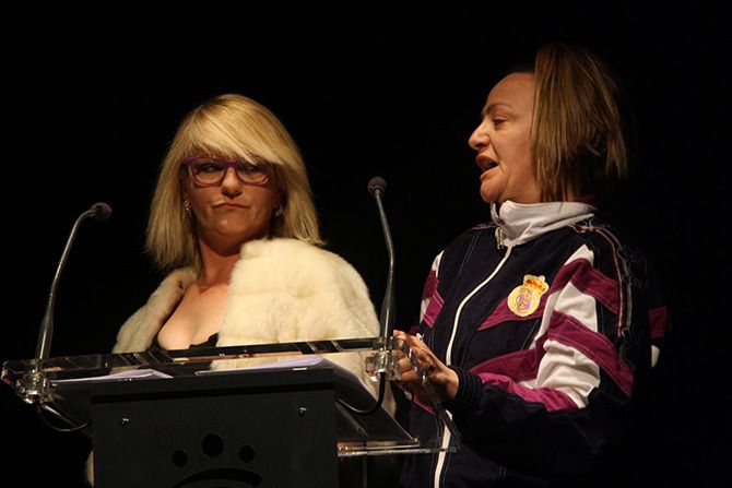 Las presentadoras de la Gala fueron las actrices del Grupo de Teatro La Higuera: Piedad Bueno y Andrea Cáceres, que hicieron una introducción a cada una de las actuaciones y al conjunto de la gala, muy a tono con el humor de las dos murgas participantes.