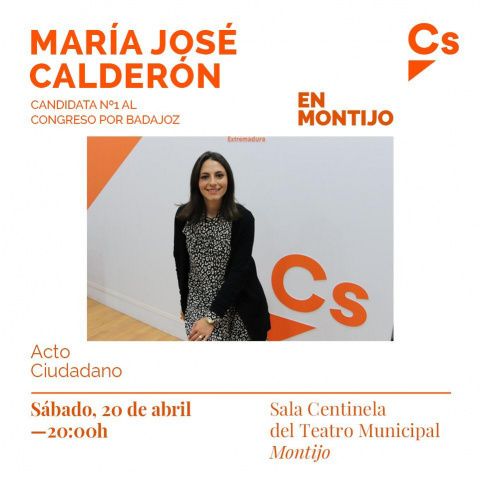 El sábado día 20 de Abril en la sala Centinela del teatro municipal de Montijo, intervendrán, junto con Eusebio Alvarez, el Portavoz autonómico de Cs y candidato a la Presidencia de la Junta de Extremadura, Cayetano Polo, y la candidata número 1 al Congreso de los Diputados por la provincia de Badajoz, María José Calderón.