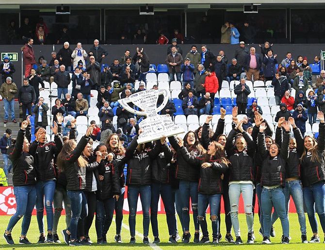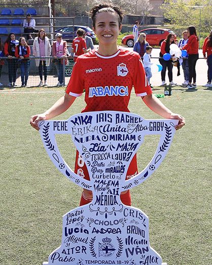 Alba Merino se proclama campeona junto a sus compañeras del grupo 1 de Segunda División Nacional, con el Deportivo de la Coruña.