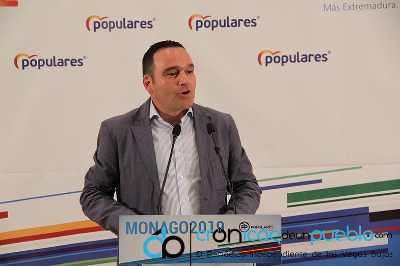 José Antonio Monago, candidato a presidir la Junta de Extremadura, en su intervención agradeció a Alfonso Pantoja la cesión generosa del testigo en el mando del PP de Montijo y su ayuda a la transición en el cargo. Monago pidió el voto íntegro para el PP hablando del engaño de la campaña “1+1+1” que sugiere repartir el voto entre los partidos de derecha, señalando que "lo único que se consigue con este sistema es castigar a los candidatos propuestos por el PP por lo que en la papeleta del Senado hay que marcar las tres cruces para el Partido Popular"