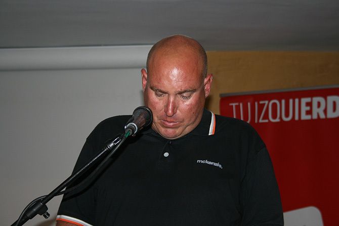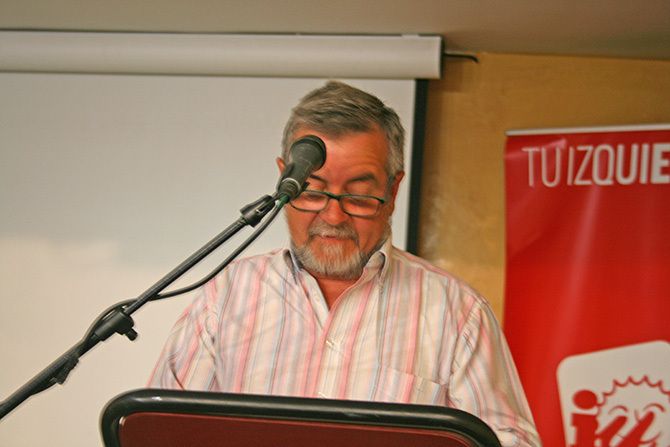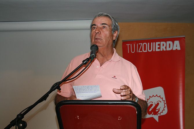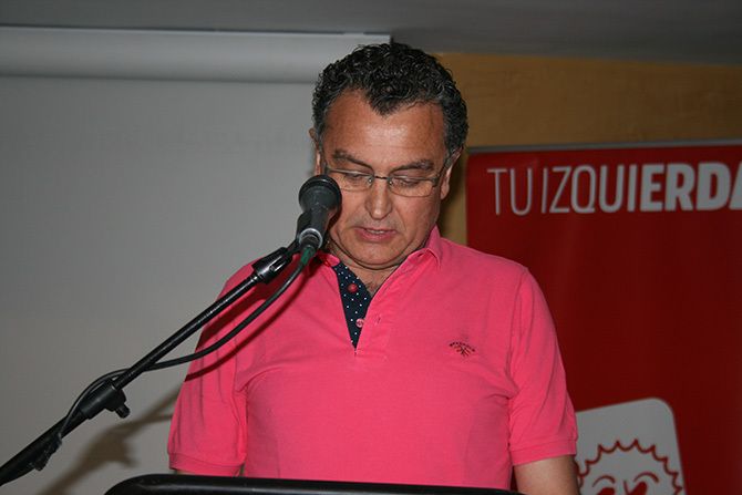 Antonio Rodríguez estuvo acompañado en la presentación por Joaquín Macías, coordinador de IU Extremadura y candidato a la Asamblea por el partido.
