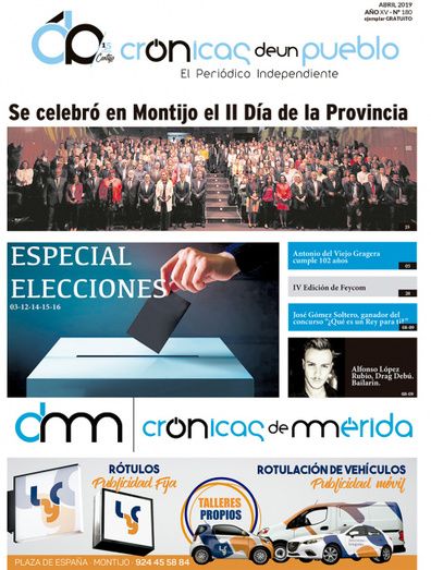 Ya está en la calle el número 180 de Crónicas de un Pueblo, correspondiente al mes de abril, edición que destaca en su portada la celebración del Día de la Provincia en Montijo, acogiendo a multitud de personalidades políticas y de distintos ámbitos de la cultura, la educación, la empresa, etc de nuestra región.