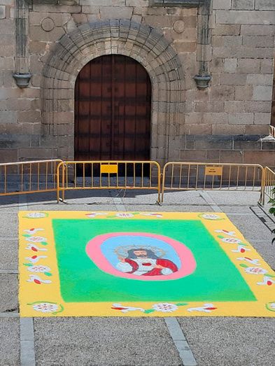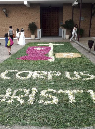 Con motivo del Día del Corpus Christi, grupos de voluntarios de las parroquias de San Pedro Apóstol y San Gregorio Ostiense se organizaron para realizar dos alfombras con que decoraron la entrada a las puertas de los dos templos.