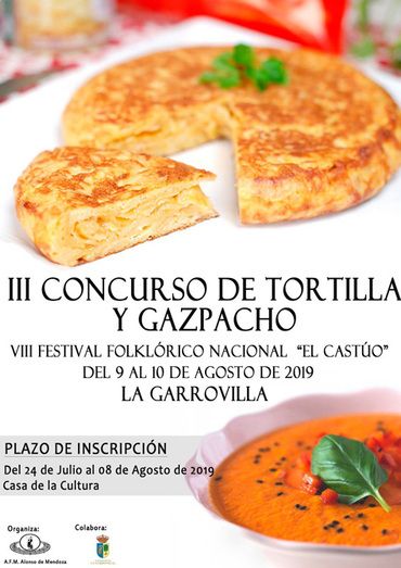 El sábado día 10 comenzará con la presentación de la revista saber popular a las 11:00 de la mañana en la casa de la cultura y a continuación tendrá lugar el III CONCURSO GASTRONÓMICO DE TORTILLA Y GAZPACHO, cuyo plazo de inscripción finaliza el 8 de agosto en la Casa de la Cultura . El broche final se pondrá a las 22:00 horas con las actuaciones de los Grupos Folklóricos de Coros y Danzas Los Jarantinos de Jaraiz de la Vera, Larratz Dantzari Taldea de Burlada de Navarra y la Agrupación Folklórica Municipal Alonso de Mendoza.