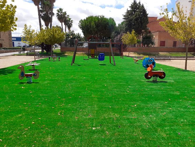 Se ha realizado el cambio de suelo de seguridad de arena por el de césped artificial sobre base amortiguadora, adecuando la zona para su uso y disfrute de los vecinos de la zona.