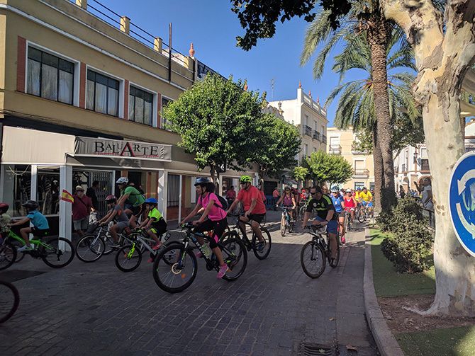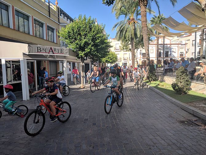 La Plaza de España de Montijo congregó el domingo 15 de septiembre a un gran número de vecinos, de todas las edades, que acudieron con sus bicicletas para realizar un paseo por las calles del municipio.