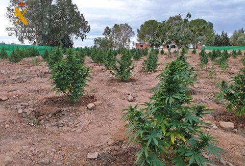 Con la ubicación de la plantación, este pasado viernes la Guardia Civil realizó el registro en el interior de la finca, donde los agentes hallaron ocultas entre mallas de rafia, una plantación con un total de 740 plantas de marihuana de diferentes tamaños. También se intervinieron 420 gramos de cogollos en proceso de secado, balanzas de pesaje de la droga y diferentes productos para el cultivo y desarrollo de las plantas.
