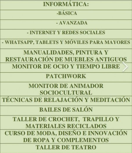 • Curso de Informática (Básica y avanzada, e Internet y redes sociales. También se enseñará el uso de whatsapp, tablets y teléfonos móviles para mayores)