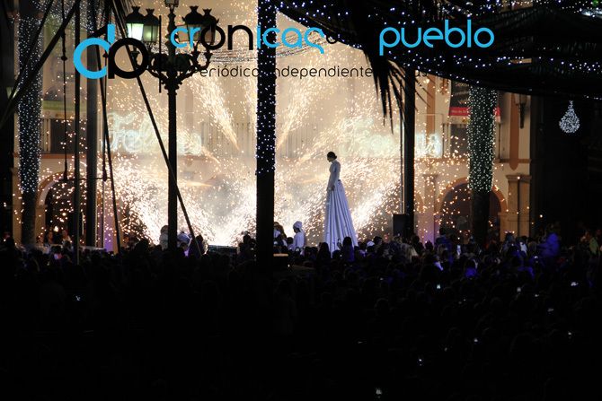 Un montaje lleno de acrobacias, proyecciones, música, pirotecnia y danza aérea ha dado el pistoletazo de salida a las fiestas navideñas de Montijo. El público disfrutó del espectáculo de encendido navideño que desde el Ayuntamiento, a través de la concejala de Festejos, Charo Moreno, ya han calificado como un auténtico éxito.