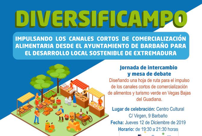 El Ayuntamiento de Barbaño, dentro del Proyecto Diversificampo II para el Impulso de los Canales Cortos I Mercado de Alimentos de Proximidad, celebra el jueves 12 de diciembre una Jornada Técnica de Intercambio y Debate, en el Centro Cultural de Barbaño.