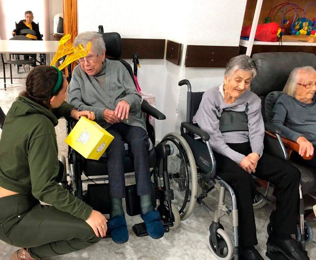 Días después recibieron la visita de los alumnos y alumnas de un curso de monitor de actividades de ocio y tiempo libre, organizado por la Universidad Popular. Durante una hora y media realizaron actividades para ellos:  juegos con dados gigantes, bolos, juegos de mesa, canciones y bailes. Además, hablar y comunicarse con ellos fue de lo más emotivo.