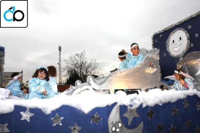 La Cabalgata de Reyes en Montijo salió a pesar del tiempo, que amenazaba con lluvia y que provocó que algún que otro componente de las carrozas del Ayuntamiento y las distintas Asociaciones participantes tuviera que resguardarse bajo un paraguas antes de la salida.