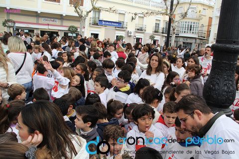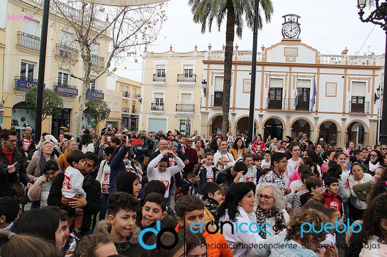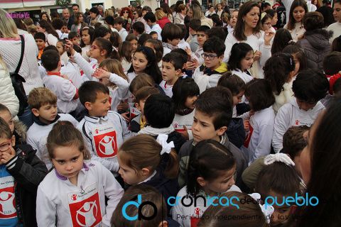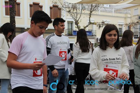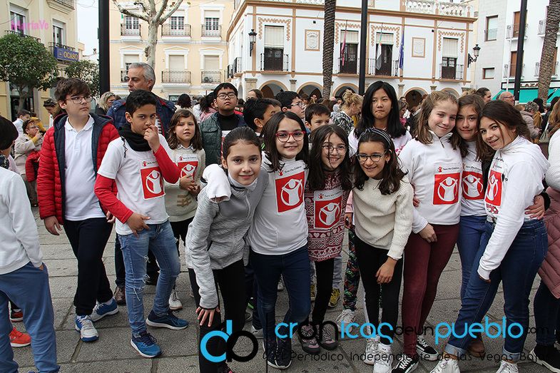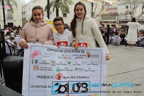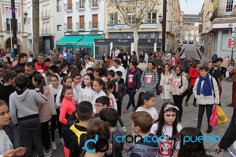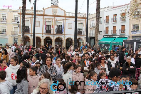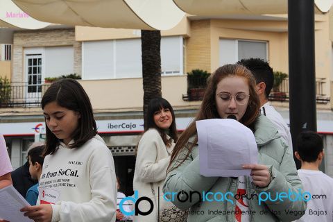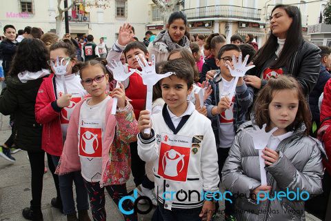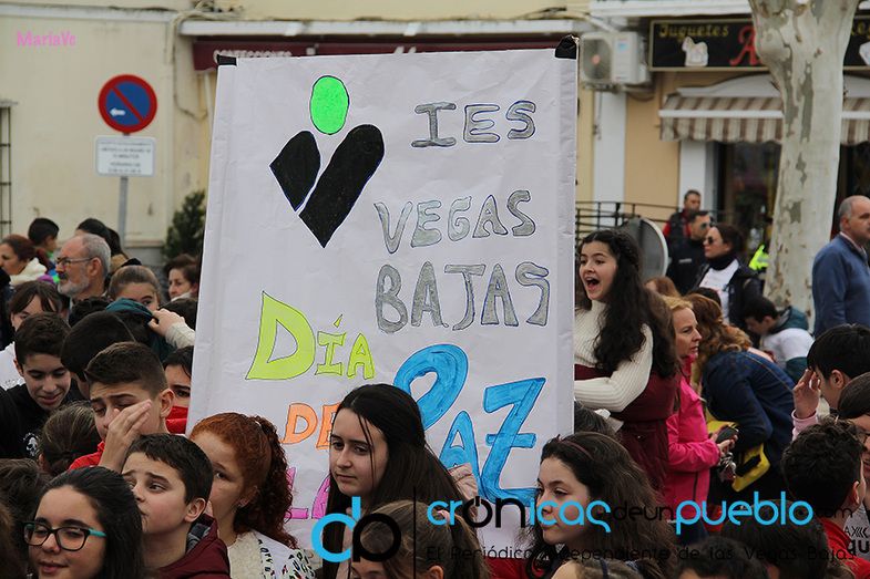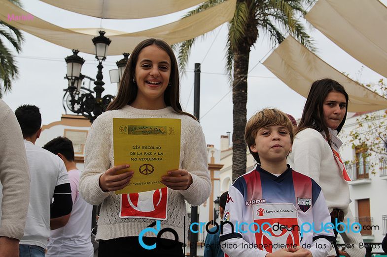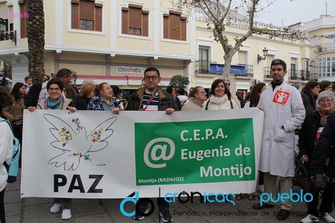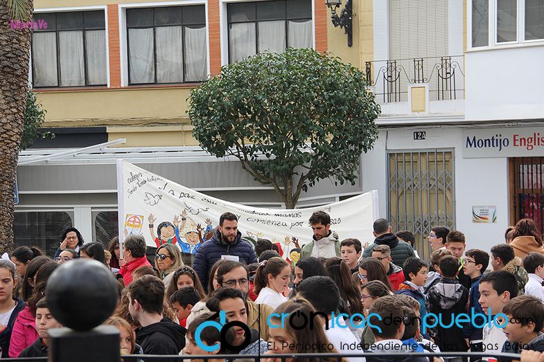 Con una semana de retraso debido a las inclemencias meteorológicas, los centros educativos de Montijo celebraron el Día de la Paz con una pequeña caminata desde la barriada de El Molino hasta la Plaza de España, donde leyeron un Manifiesto.