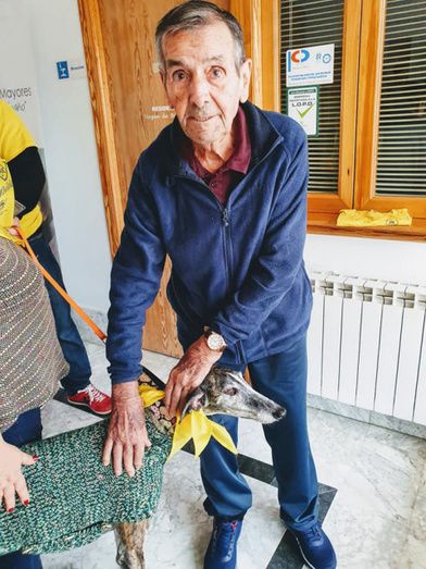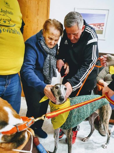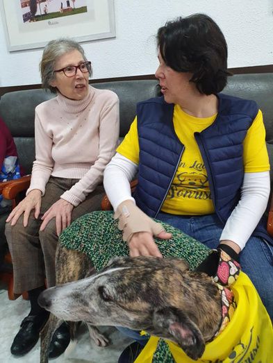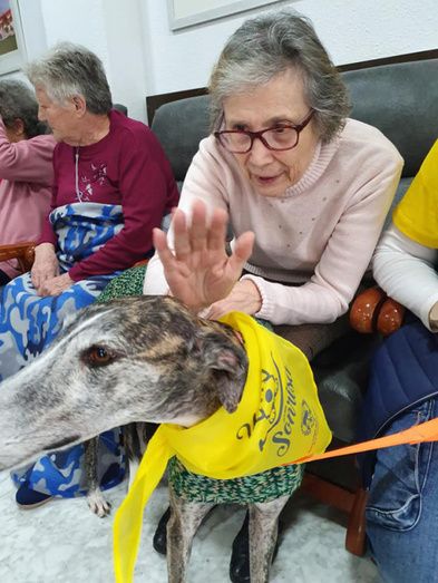 Las visitas, acordadas, se realizan cada dos semanas. Las mascotas y los voluntarios y veterinarios, ataviados con camisetas y pañuelos amarillos con el mensaje “Un ladrido una sonrisa”, saludan y realizan actividades de juego y observación con el objetivo de evocar recuerdos agradables del pasado, el disfrute y compañía del cariño de los animales y familiares, que llenan de alegría y felicidad los rostros de los usuarios del centro de mayores.