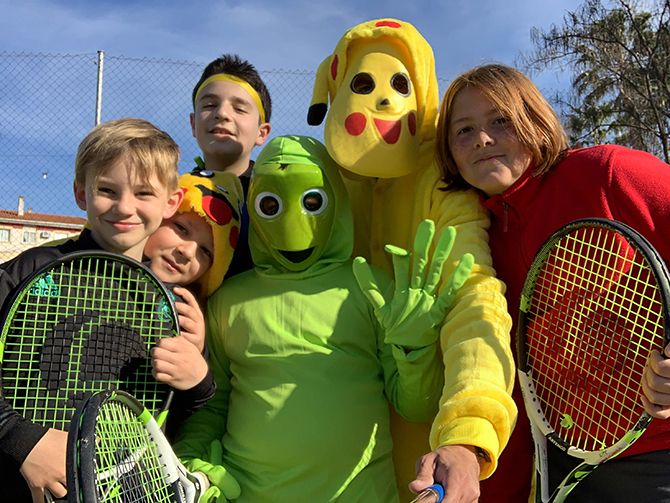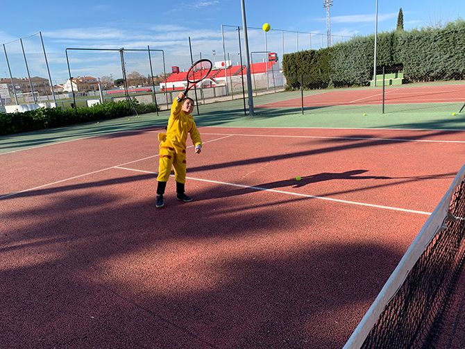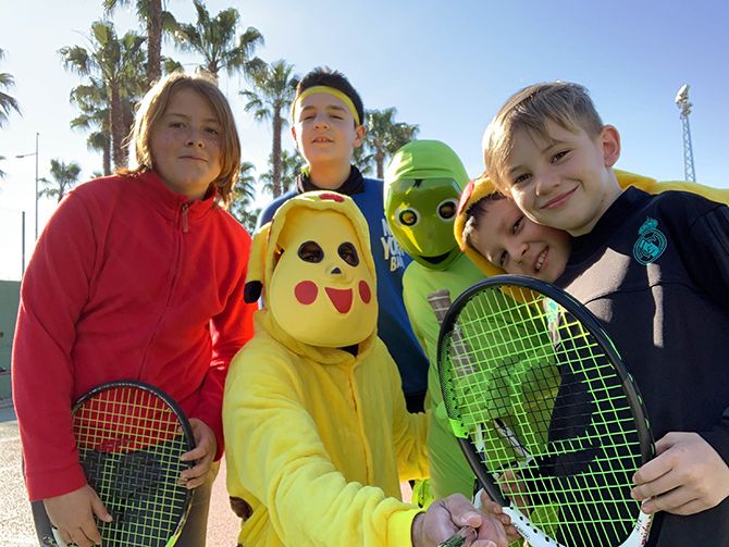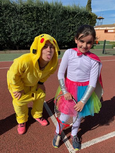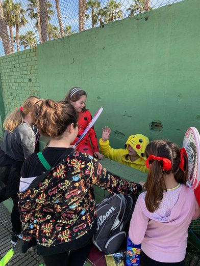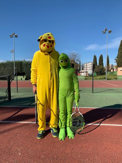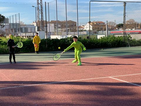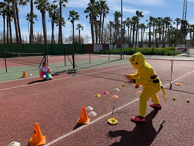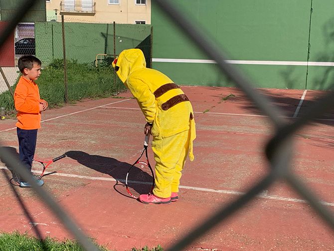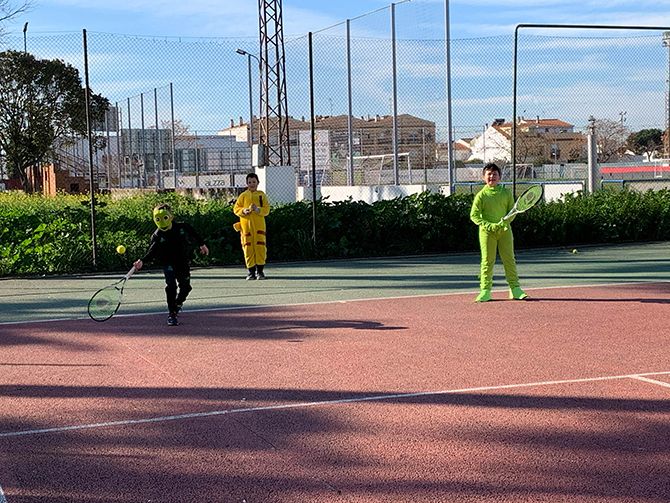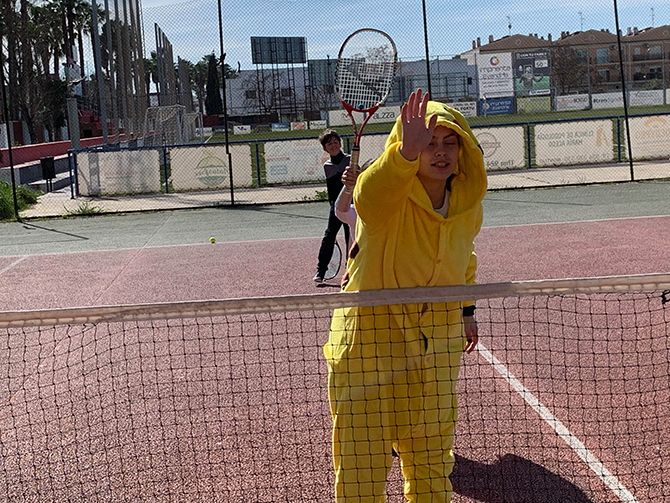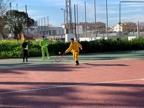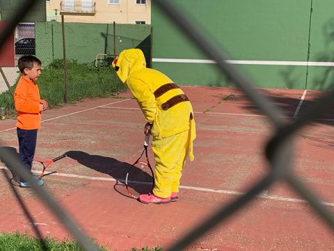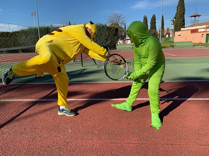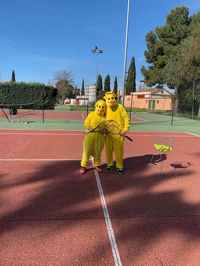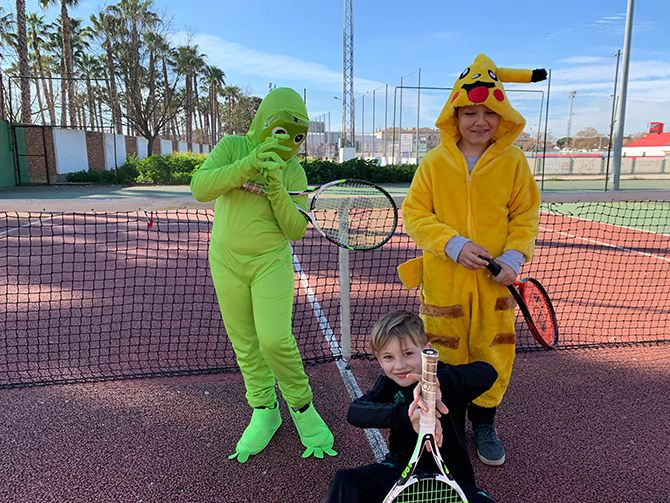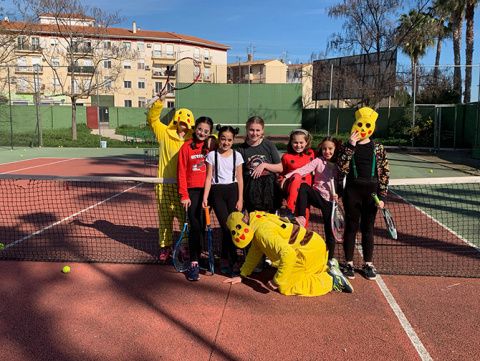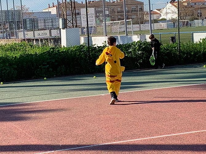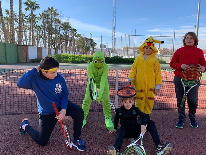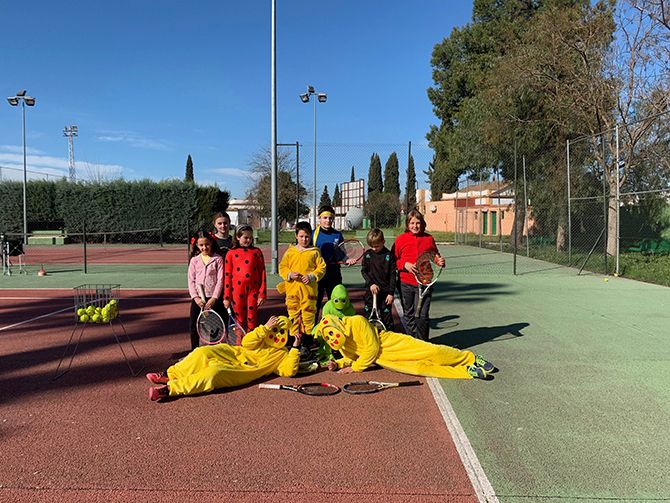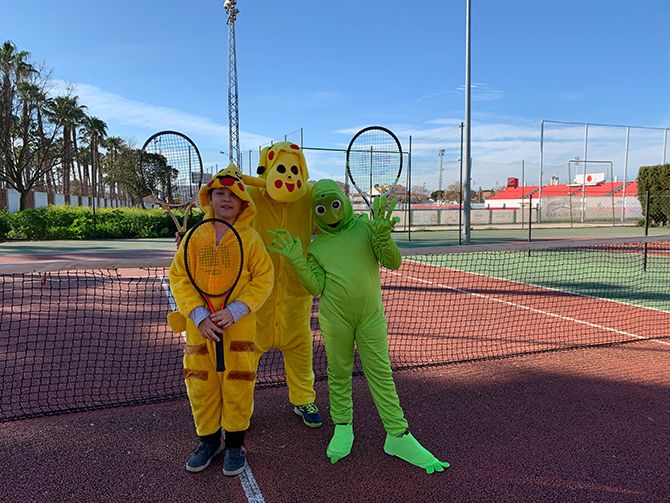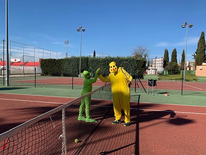 El club de tenis de Montijo celebró su particular Carnaval, disfrazándose los profesores y alumnos durante sus clases de tenis.