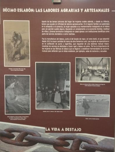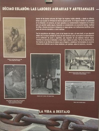 Estructurada en doce secciones, muestra útiles y máquinas que perpetuaron, como eslabones de una cadena, la dedicación de las mujeres a ciertas tareas tanto en el ámbito rural como en el urbano, relegándolas socialmente al auxilio social, la reproducción, la crianza y otros trabajos domésticos.