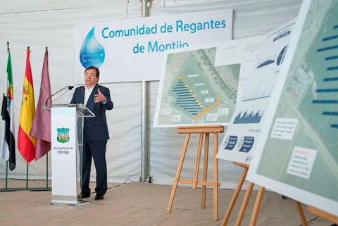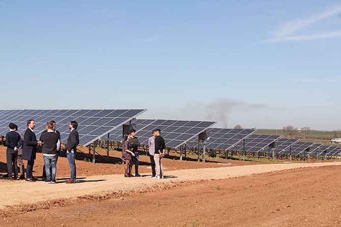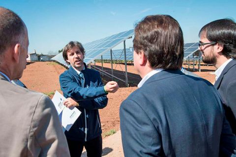 El presidente de la Junta de Extremadura, Guillermo Fernández Vara, asistió junto a la consejera de Agricultura, Desarrollo Rural, Población y Territorio, Begoña García, y los alcaldes de la comarca, las instalaciones de la planta fotovoltaica de la Comunidad de Regantes de Montijo.
