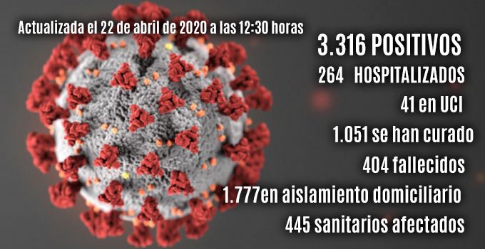 El número de fallecidos desde el inicio de la pandemia ha sido de 404, desde ayer 7 más. Los casos positivos acumulados se sitúan en 3.316, desde ayer 47 nuevos.