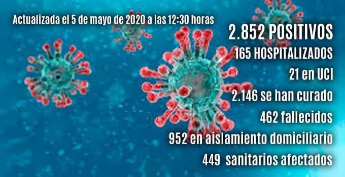 La región acumula 2.852 positivos por PCR, 3 más desde ayer. Los hospitales extremeños tienen 165 pacientes ingresados con covid-19, de los que 21 están en UCI. Hay 952 personas en aislamiento domiciliario, y se han contagiado 449 sanitarios del SES, de los que 343 se han curado.
