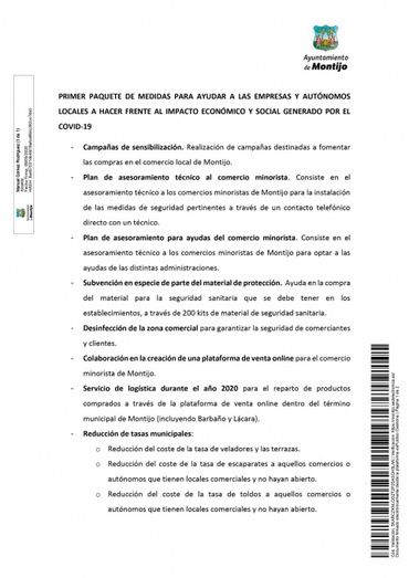 El Ayuntamiento de Montijo publica el Primer paquete de medidas que ha elaborado para ayudar a las empresas y autónomos locales a hacer frente al impacto económico y social generado por el Covid-19.