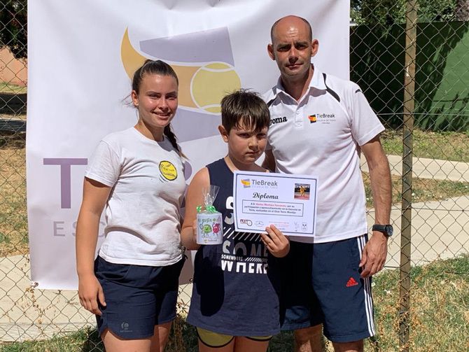 Los monitores de la escuela de tenis “Tie Break” Deme, Carlos y María están “felices por el cariño recíproco de sus alumnos durante las muchas horas en pista que han estado, ldesean feliz verano y buen descanso a todos, y os anima a seguir practicando tenis durante estos meses de vacaciones, pero siempre con precaución frente a las temperaturas y al covid. Feliz Verano, volvemos en Septiembre a crear afición por el deporte, en especial al tenis”.