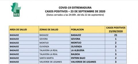 Según los datos aportados por Salud Extremadura, se habrían notificado dos nuevos positivos por coronavirus en Montijo y un alta entre los anteriores, los que sumaría un total de 48 las personas afectadas en el municipio.