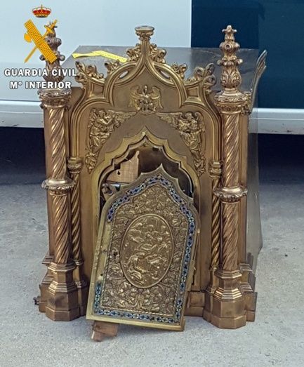 Dado el valor patrimonial de esta clase de material susceptible de ser vendidos en el mercado negro, se actuó con premura interviniendo y recuperando el sagrario en la vivienda familiar, desconociendo el destino dado a los demás objetos de los que ya se había desprendido. Sagrario, que fue devuelto al párroco de la Iglesia.
